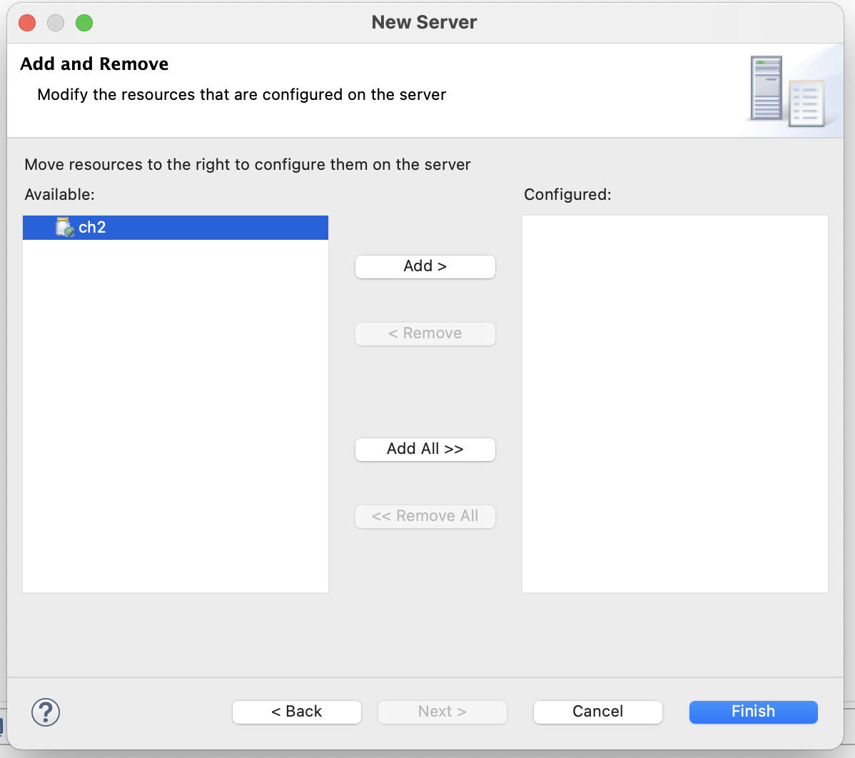 아래의 화면에서 ch2를 클릭하고, Add를 클릭한 후 Finish클릭.