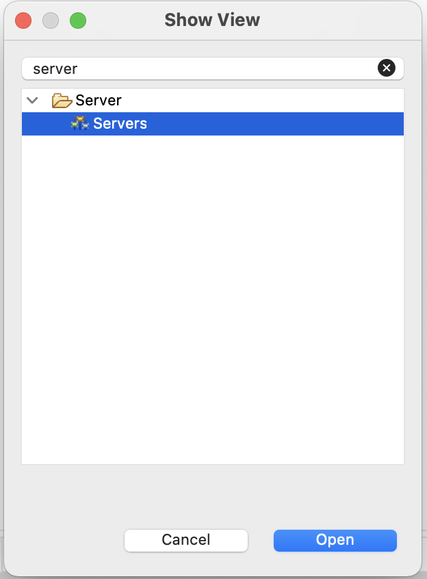 Servers를 클릭하고, Open클릭