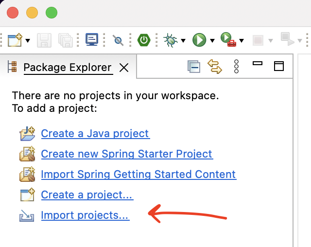 STS4에서 import projects...를 클릭(또는 빈 공간에서 우클릭 > import)